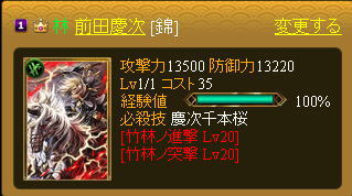 慶次育成イベントで進撃と突撃の両方でレベル20になった!俺氏素敵☆