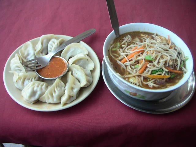 レイクサイドでおいしいモモが食べられるところはないかとHumrajさんに聞いたら、バス会社のGreen Lineオフィスの近くにシカルモモという店はうまいと教えてもらった。地球の歩き方ではD.B.モモを載せているが、Humrajさん曰く、そこは観光客向けだからあまりおすすめしない。教えられた通りにシカル モモへ入り、パフモモ(80Rs)とエッグトゥクパ(80Rs)を注文した。素のパフモモも美味しいがピリ辛ソースを付ければさらにうまくいただける。 トゥクパもカトマンズで食べた味とも違い独特な美味しさを持っている。