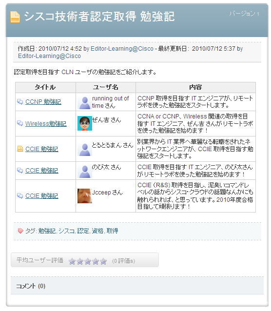 ![]() MPLSはいい加減飽きてきたから、本当は無線技術を集中して勉強したいところだがSPラボが合格しないとなかなか前へ進むことが出来ない CCIE Wirelessこそ一番新しいトラックですが、無線技術はなにげに歴史が一番古く、IRの発見で無線技術が始まったとするならば約200年の歴史はある!狼煙も無線技術だ!と主張するならばその歴史は一気に紀元前まで遡るw 一方MPLSなんかは10数年、タグ転送技術で見てもせいぜい数十年程度。だから無線技術の本も日本語で読めるものも多いこともあって、実は一番勉強しやすい科目のような気がする。しかし本気でCCIE無線ラボに挑戦するにはラボ環境という難題にぶつかる。どのトラックもそうだがラボ環境さえ充実していいればラボ試験の敷居が一気に下がるのは言うまでもない。 話はそれたが、Cisco Learning Networkで「Wiress 勉強記」を書いていて、そこの勉強記のページが整理されてリニューアルしたよ。と今回は言いたかっただけ。。。