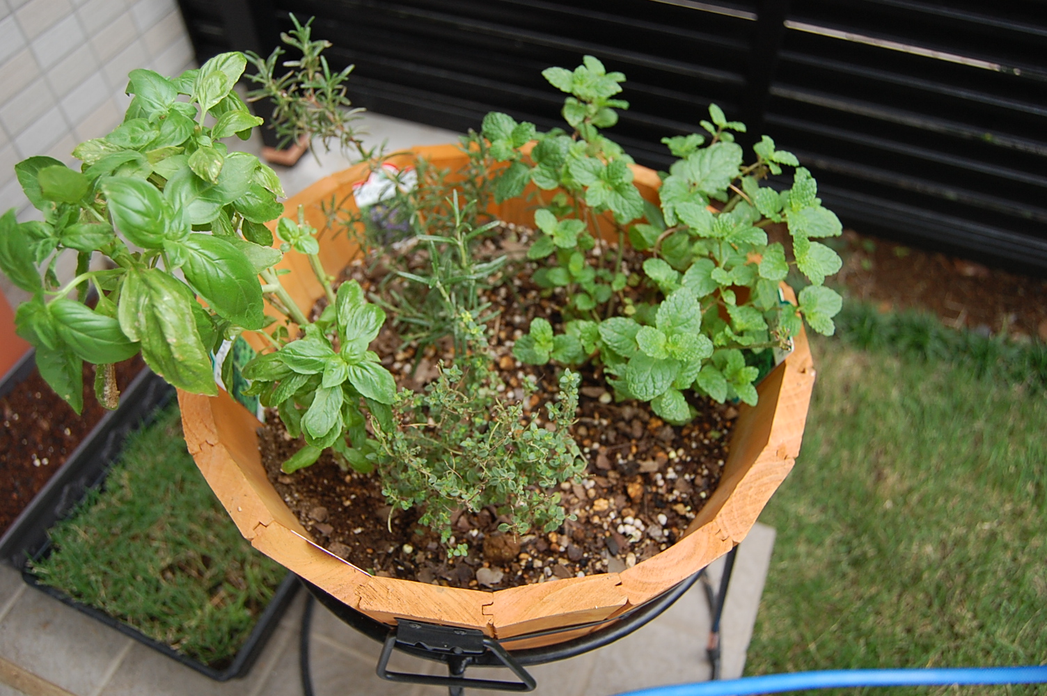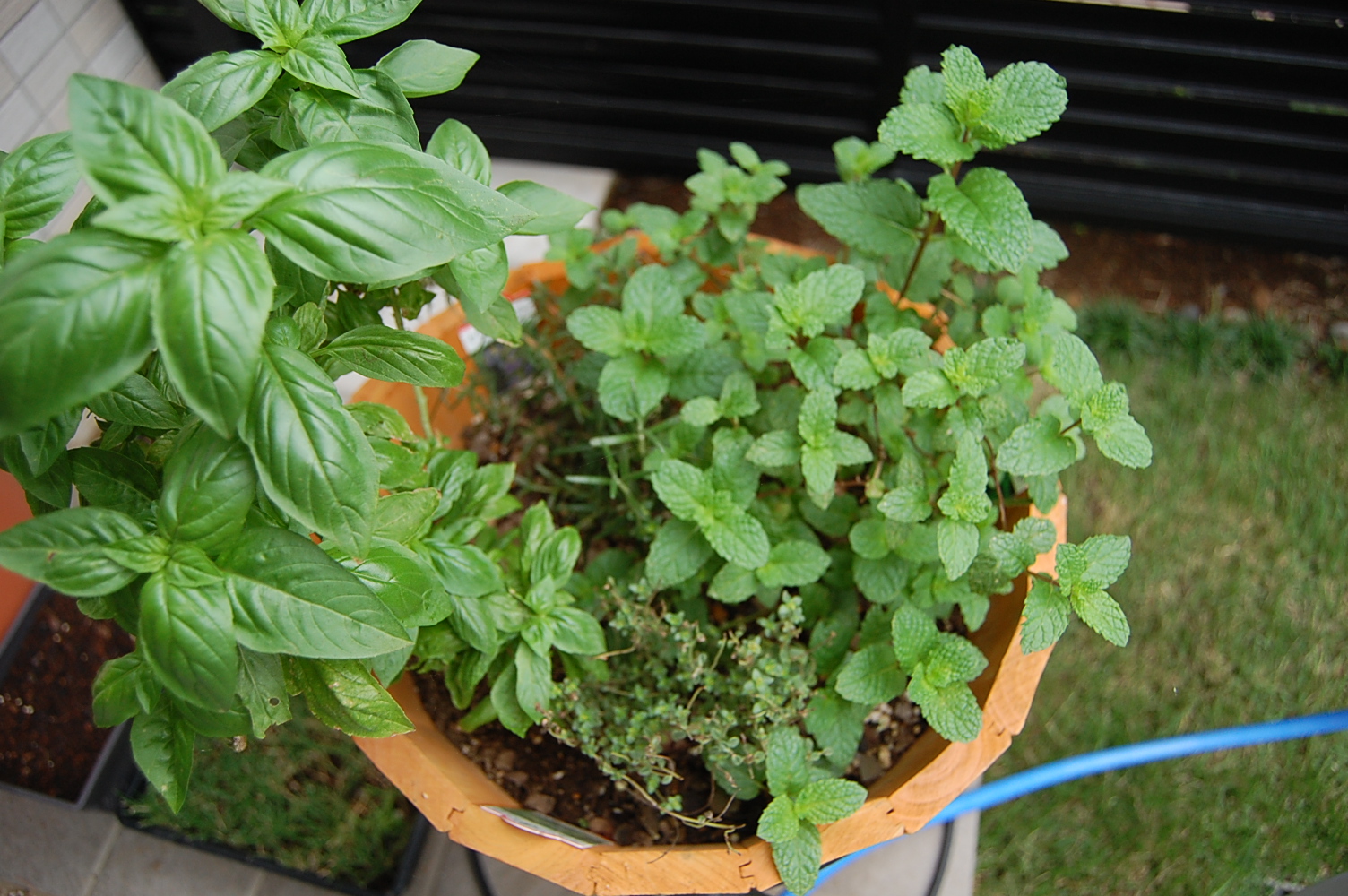 成長速度が速くて、切っても切っても増えてしまう。ハーブティー用に栽培し始めたが、収穫量が多すぎて消費しきれない。しばらく放置していたら、ローズマリーとタイムが圧迫されてしまったので、カット!
