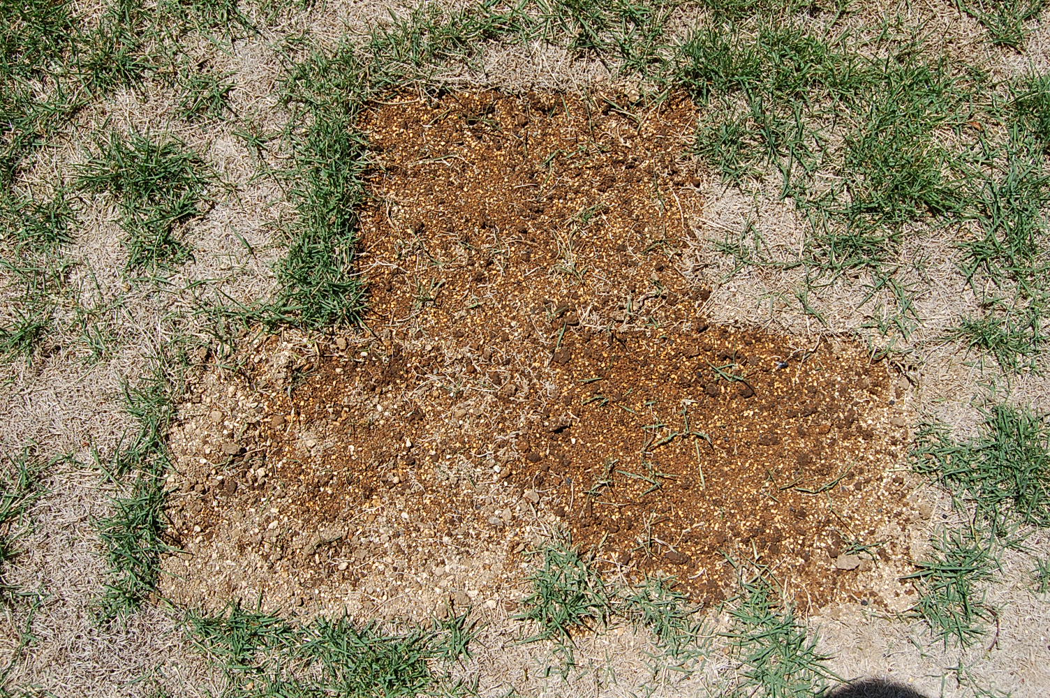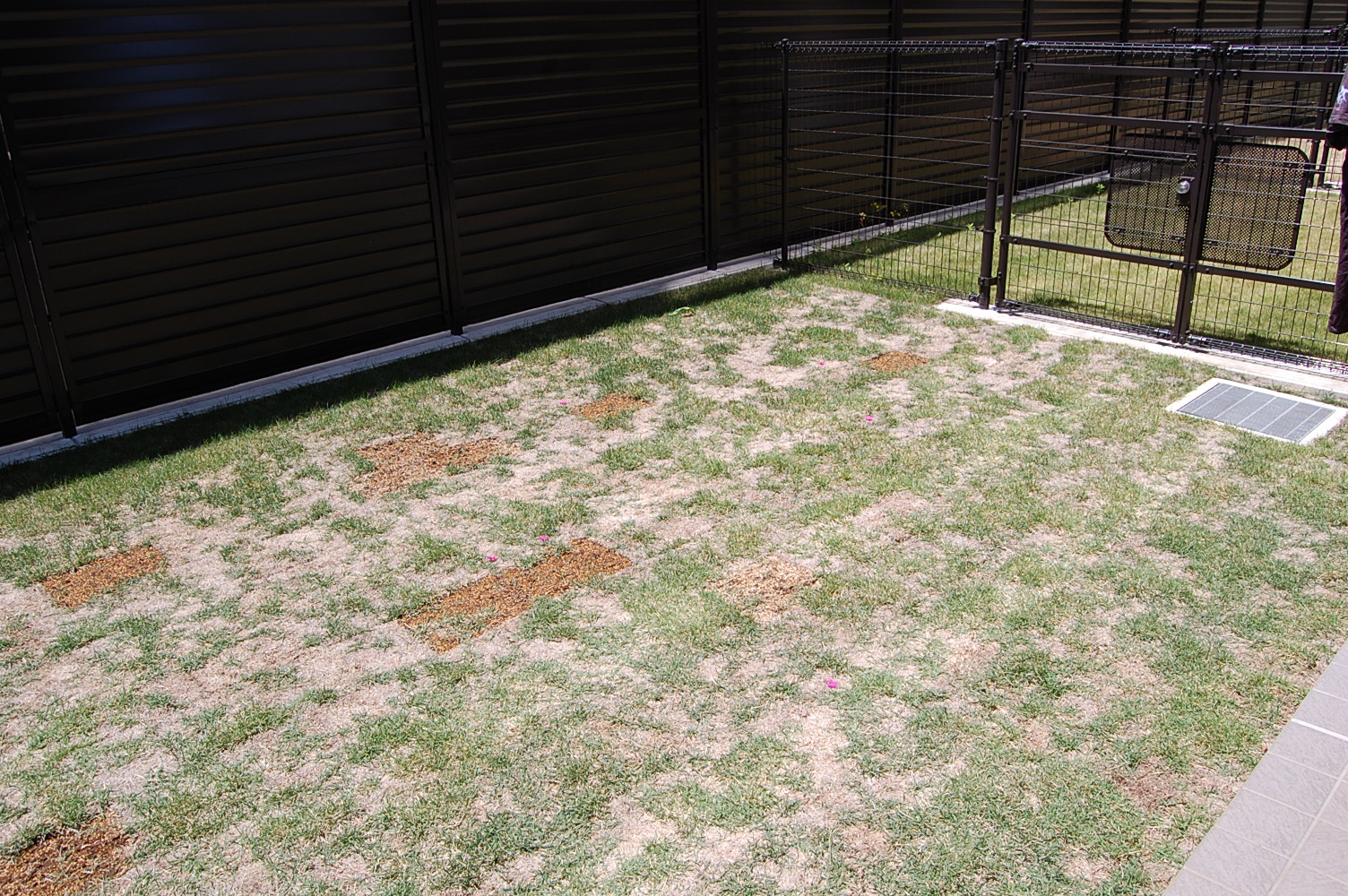 完全に枯れてしまった芝生を思いっきり剥がした。剥がした芝から丁寧に匍匐茎を一本一本摘み取って、土に埋めた。埋めた匍匐茎と周りの芝から伸びる匍匐茎が、徐々に禿げている土を覆ってくれるのを楽しみに待っている。