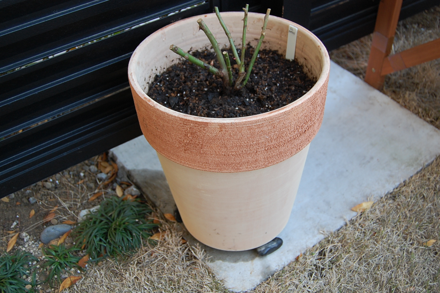 処理前のクイーンエリザベス、ピンクの大輪を咲かせるハイブリッドティーである。秋頃には2メートルぐらいの高さに成長する優等生大苗。