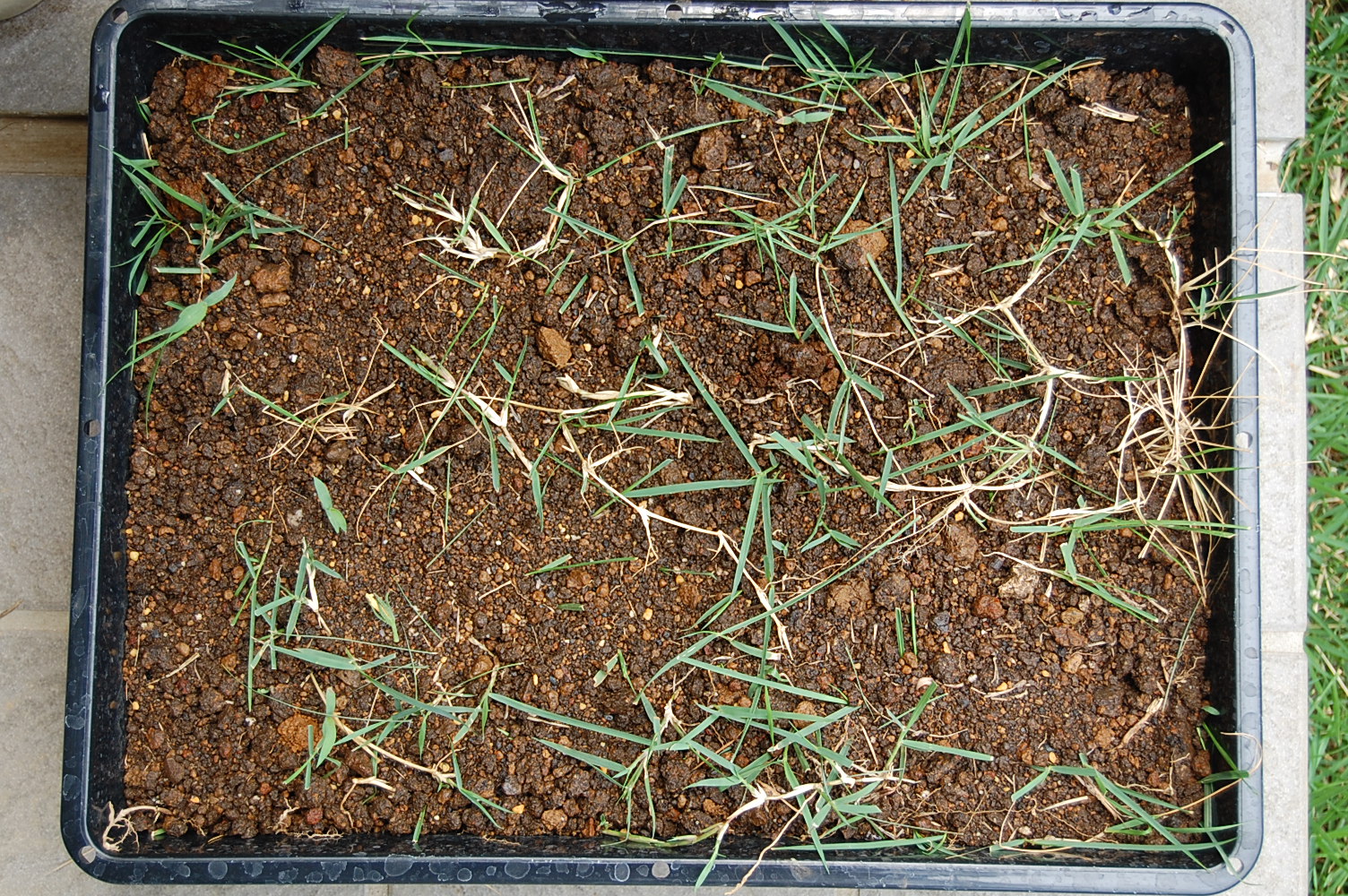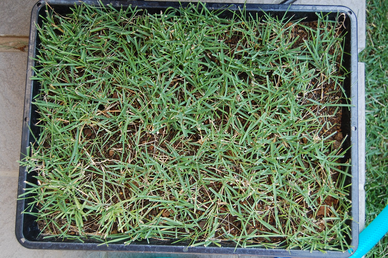 プランタ栽培の芝は、こまめにカットしたおかげで大分密集してきた。