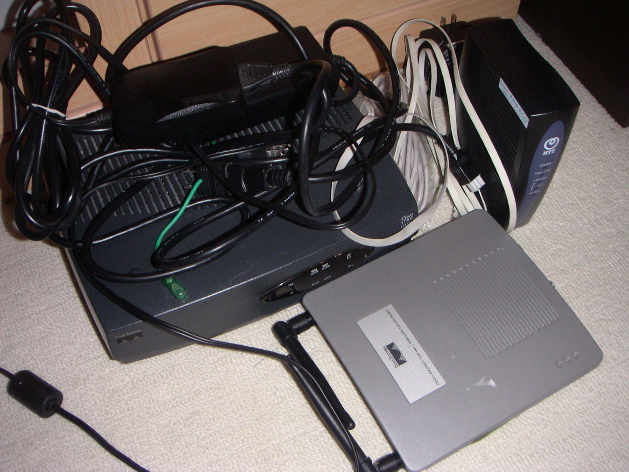 ↓今までのルータ、無線AP。なんと言ってもごちゃごちゃした電源コードとLANケーブルを一掃できたのがうれしい。ついでに自宅からシスコも一掃されたw