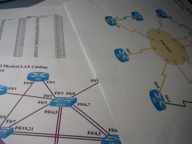 できるだけ、ワークブックと同じ構成でネットワーク全体の動きを検証するため、IEWB-RS-VOL2 Physical WAN Cablingを参考にして構成します。Catalyst3560のポート数が足りないのが唯一の難点。ある程度の制限はしかたない。