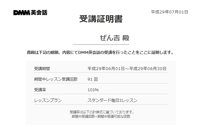 DMM英会話2017年6月の受講状況