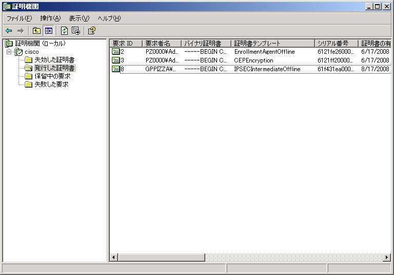 3周目はおたのしみのフル構成でガシガシやっていく予定。 【IEWB-SC-V2の進捗 17/60】 Lab01 ★★☆☆☆☆ Lab02 ★★☆☆☆☆ Lab03 ★★☆☆☆☆ Lab04 ★★☆☆☆☆ Lab05 ★★☆☆☆☆ Lab06 ★★☆☆☆☆ Lab07 ★★☆☆☆☆ Lab08 ★☆☆☆☆☆ Lab09 ★☆☆☆☆☆ Lab10 ★☆☆☆☆☆ Win2003 CAがよく分からなかったので、今までのCAを使った問題は全部実機抜きでやってきたが、さすがにそろそろ設定できないといかんので今日なんとかできるようになった。まったくの初心者なのであれこれで5時間かかりました。 % Do you accept this certificate? [yes/no]: yes 3.CAの確認 Password: 手順4のパスワード % The fully-qualified domain name in the certificate will be: R1.ccie.com CRYPTO_PKI: Fingerprint: 1B890E9D 7488A7F9 28BEF64D 5C3F92E9 CA Certificate(CAのもの) |